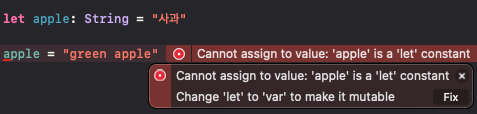 그래서 위에서 사과의 변수명을 살펴보았을때 'a' 소문자로 시작하는걸 알 수 있습니다