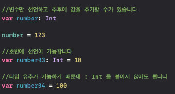 Int부분을 타입을 명시(Type Annotation)한다 라고 합니다