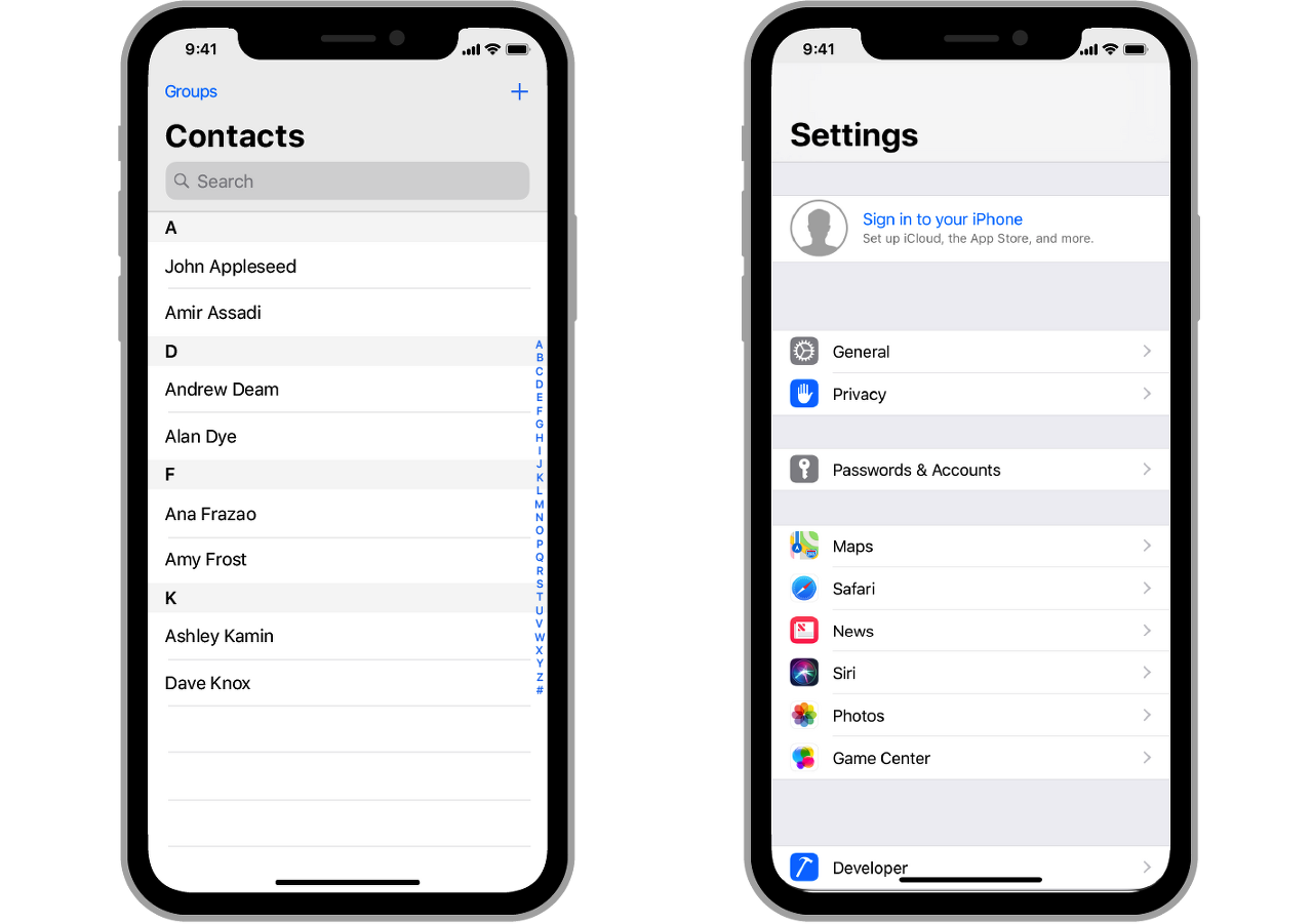 예를 들어서 설정(Settings)앱은 시스템 설정을 구성하기 위해 테이블과 네비게이션 컨트롤러를 사용합니다