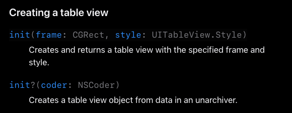 init?같은 경우는 스토리보드나 인터페이스 빌더에서 설정한 테이블 뷰 객체를 로드하고 초기화하기 위해서 입니다