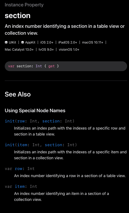그리고 row 테이블 뷰 객체는 sectin 속성을 사용하여 셀의 위치를 알려줍니다