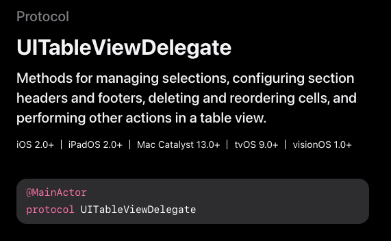 그리고 UITableViewDelegate가 가능하여