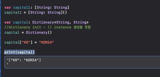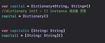capital = Dictionary()로 통해서 초기화를 할 수 있답니다 :)