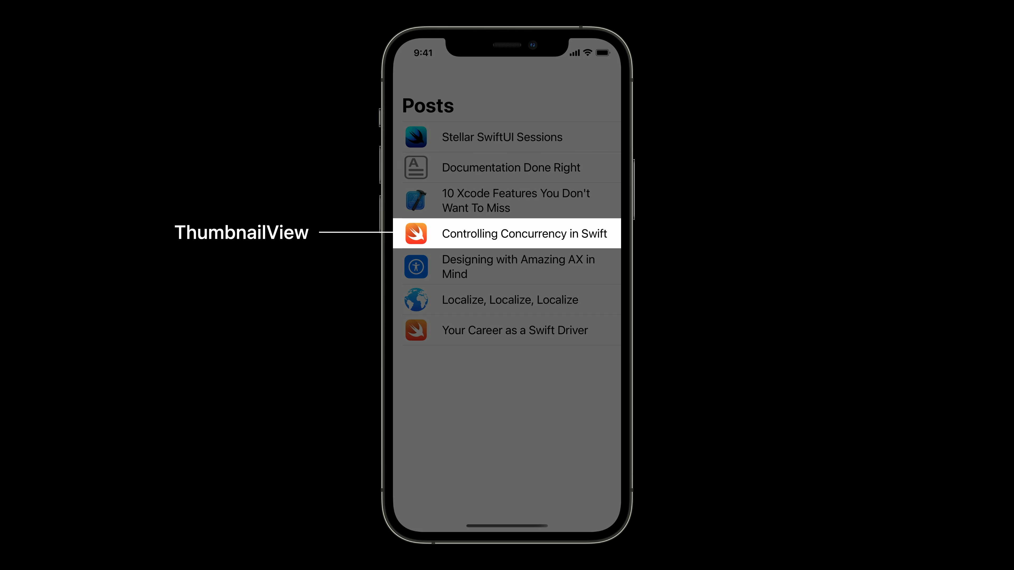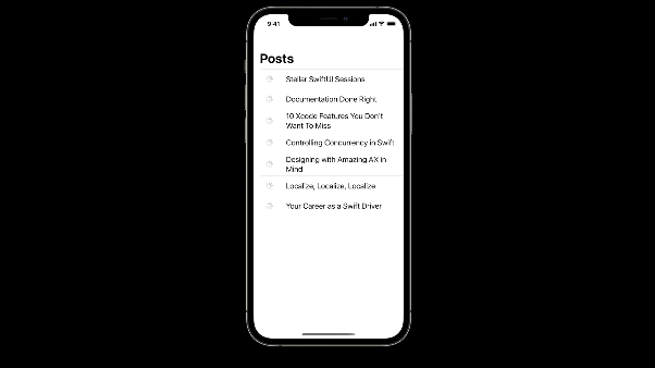 이제 테스트가 완료되었으므로 애플리케이션 코드 자체를 확대해 보겠습니다. 특히 이 목록의 각 행에 있는 썸네일 보기 뒤에 있는 SwiftUI 코드를 살펴보겠습니다.