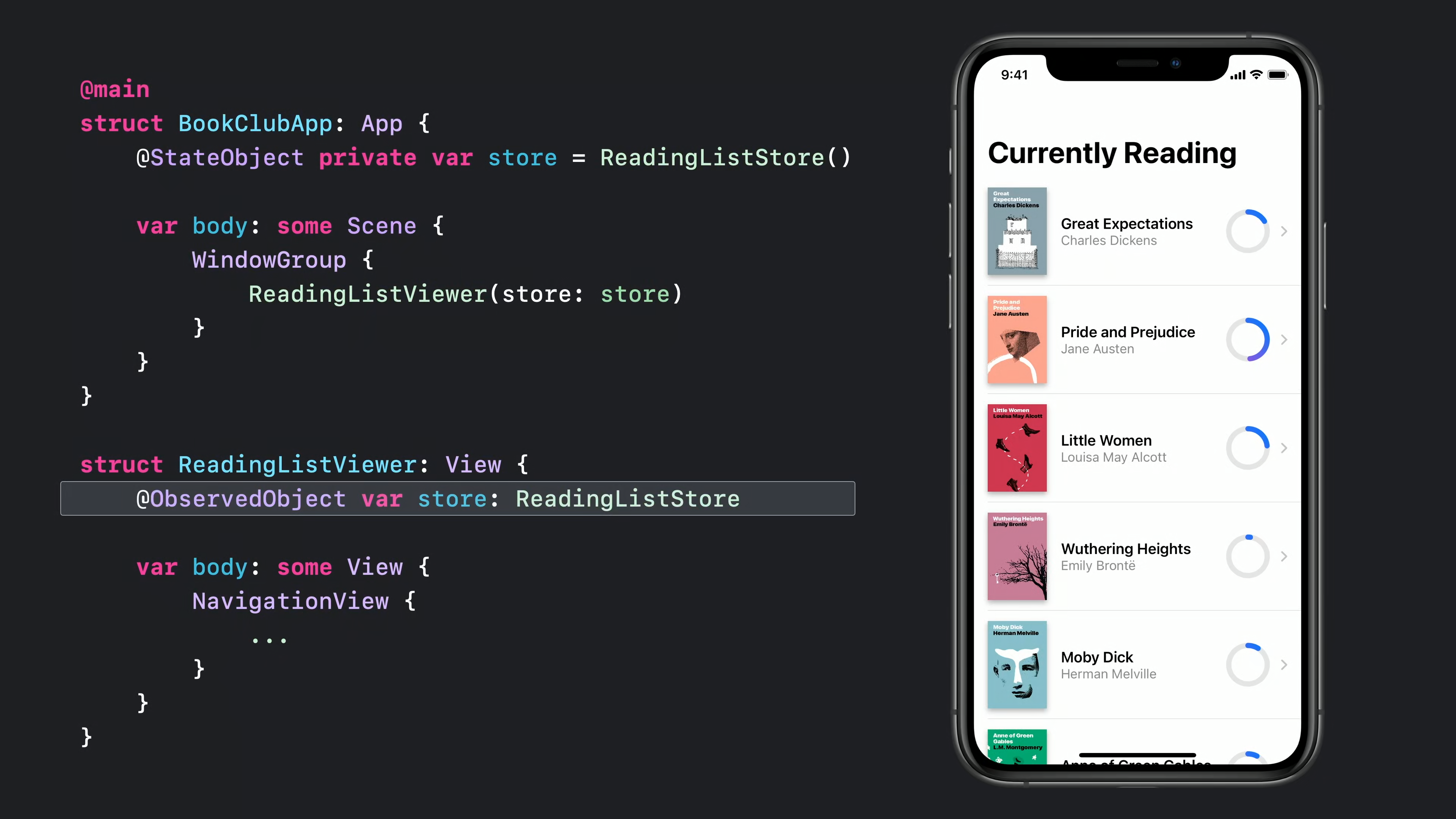 @StateObject private var store = ReadingListStore()