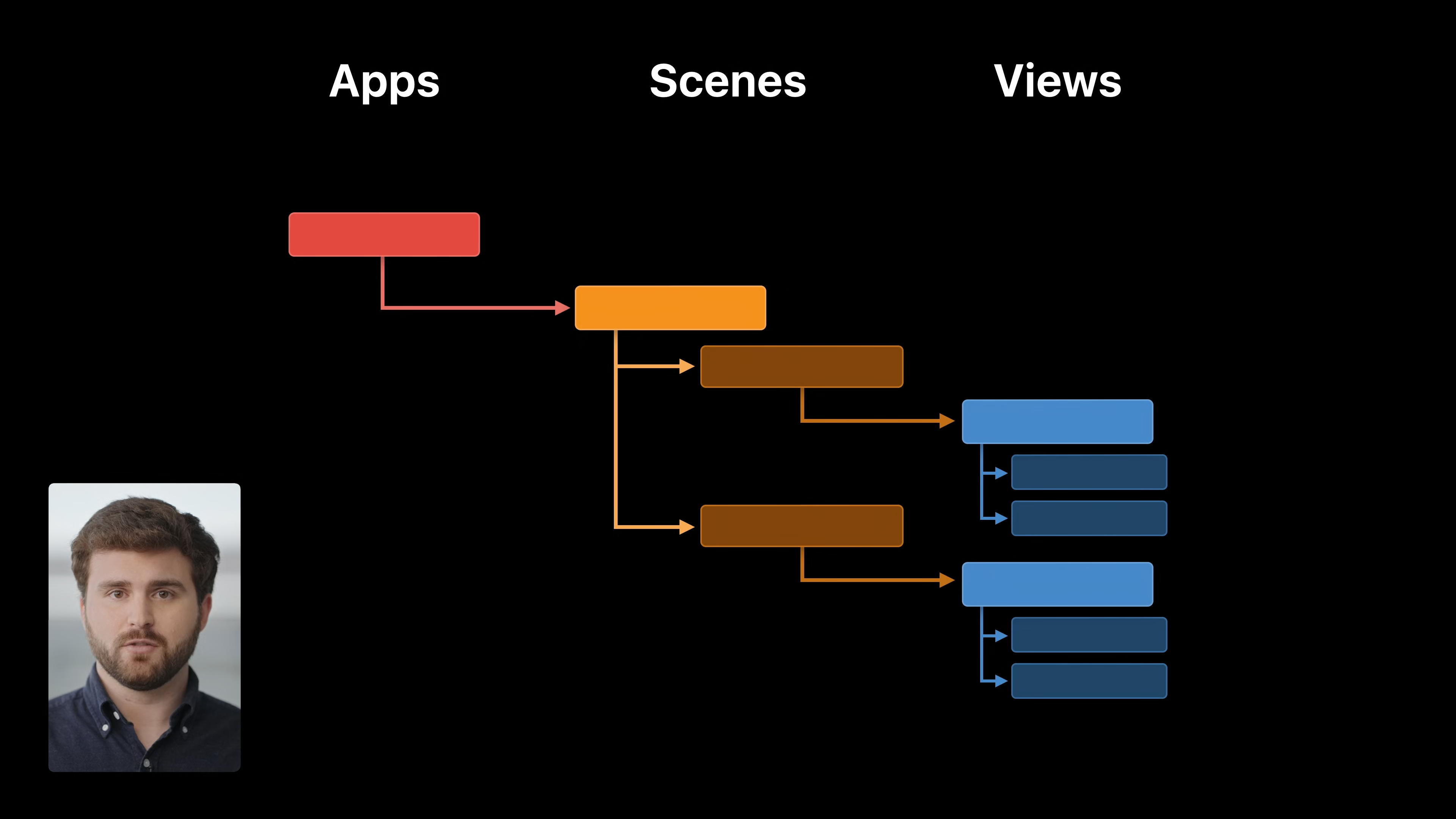 Apps - Scenes - Views로 나눌 수 있습니다