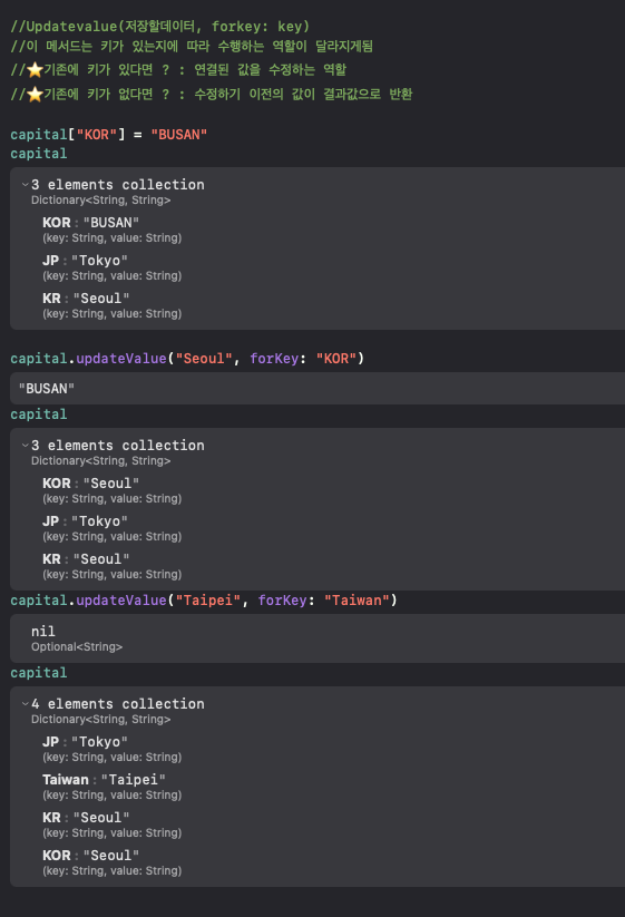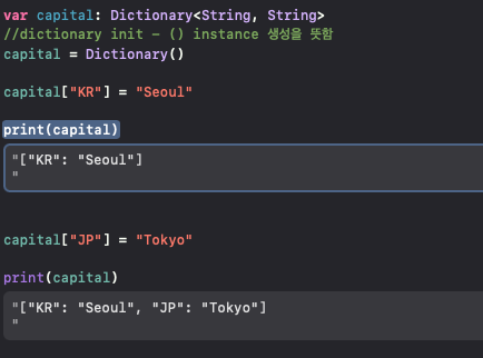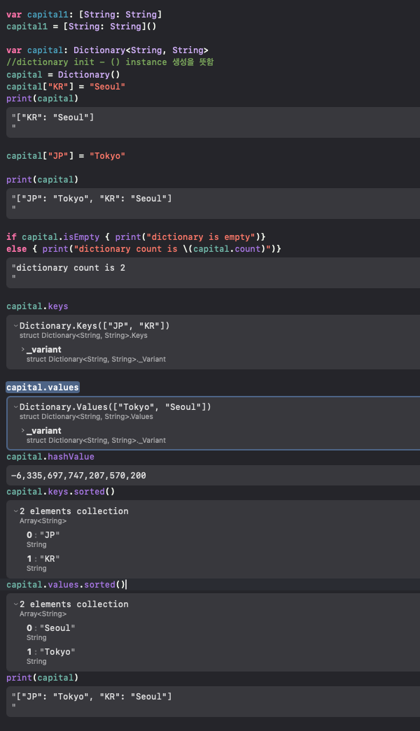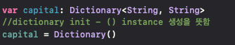 capital = Dictionary()로 통해서 초기화를 할 수 있답니다 :)