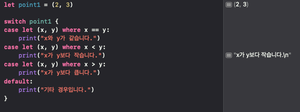 예전에 배웠던 switch문 where문에서도 상요이 가능합니다
