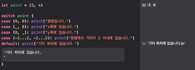 point의 각 요소에 대한 패턴 매칭을 통하여 튜플이 어떤 위치에 있는지를 확인하고 출력할 수가 있습니다