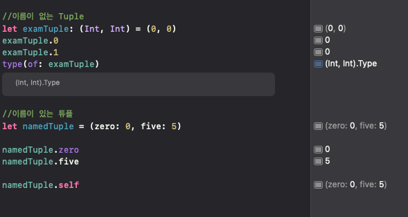 그리고 튜플의 각 요소에 접근할 때 .0, .1 ... 이렇게 접근하는 법 외에