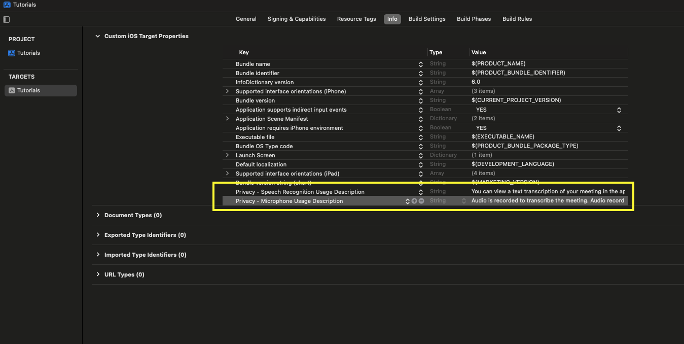 Scrumdinger는 오디오 녹음에서 회의 전사를 생성하므로, 기기의 마이크 접근이 필요합니다. 보안 기능으로 인해, 사용자는 개인 정보나 민감한 기기 하드웨어에 대한 접근을 명시적으로 허용해야 합니다. 사용자 데이터 보호에 대한 자세한 내용은 Protecting the User’s Privacy 문서를 참조하세요.