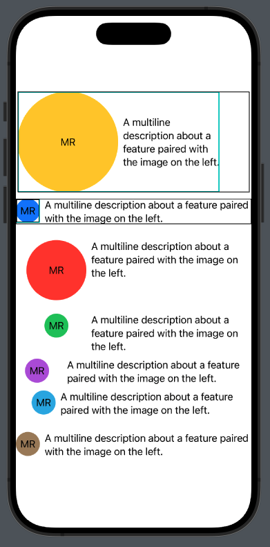 각 HStack은 서로 다른 방식으로 원과 텍스트를 정렬하고, 패딩과 테두리 등을 적용하여 다양한 디자인을 시도할 수 있는 방법을 배울 수 있었습니다