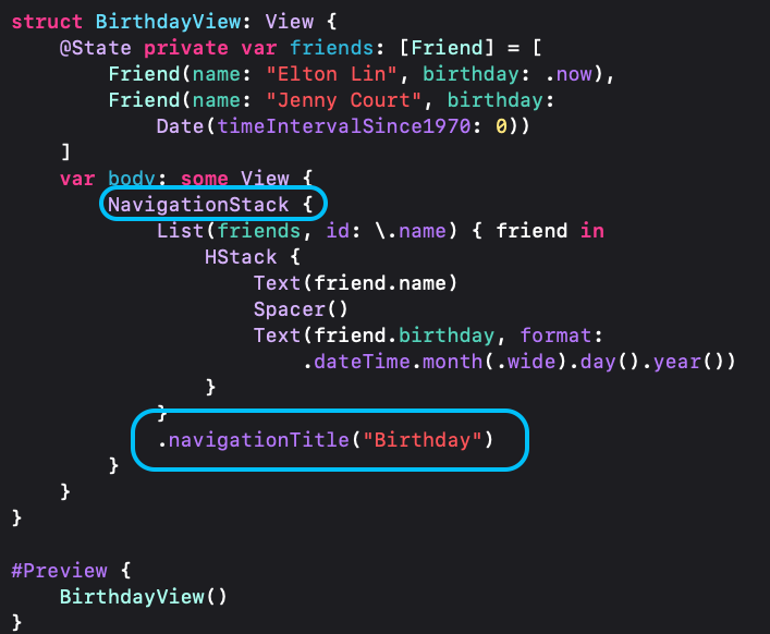 .navigationTitle("Birthday")