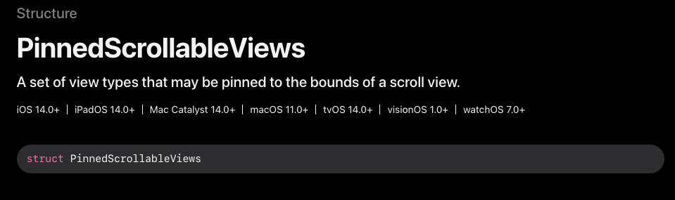 근데 여기서 pinnedViews는 LazyVStack, LazyHStack에서만 사용이 가능합니다