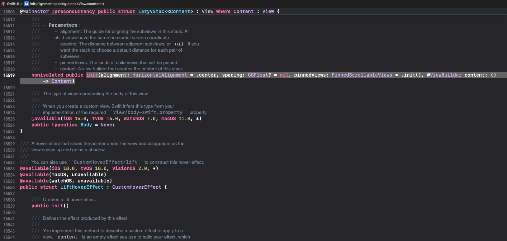 LazyVStack(spacing: 1, pinnedViews: [.sectionHeaders]) {