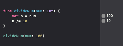 inout키워드가 쓰이지 않으면 매개변수의 값이 변경되더라도