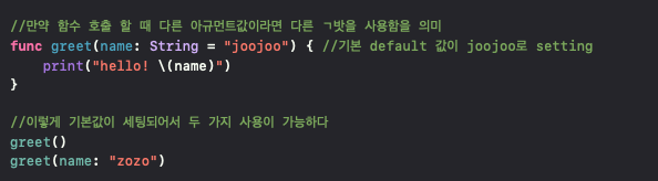 아규먼트 레이블을 사용하는 이유는 매개변수를 명확하게 식별하도록 이름을 지을 수 있으며