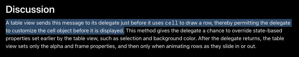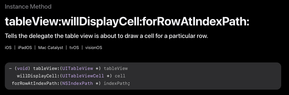 - UITableViewDelegate의 tableView(_:willDisplay:forRowAt:) 메서드