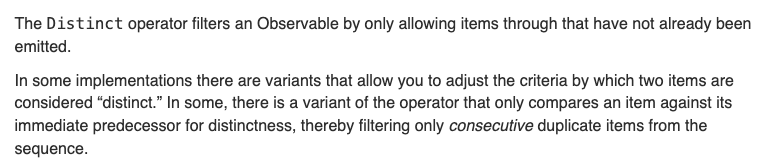 - 이전에 방출된 값과 현재 값이 같으면 데이터 스트림에 방출되지 않습니다.