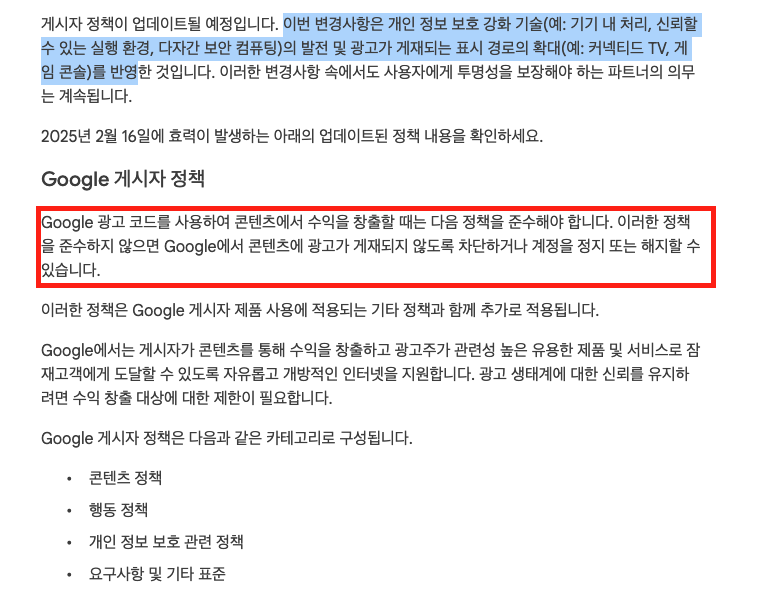 위의 콘텐츠 정책을 위반하는 콘텐츠는 Google의 플랫폼에서 허용되지 않습니다. 2025년 2월 16일에 효력이 발생하여 정책을 위반하는 콘텐츠는 삭제되거나 계정이 정지될 수 있습니다.