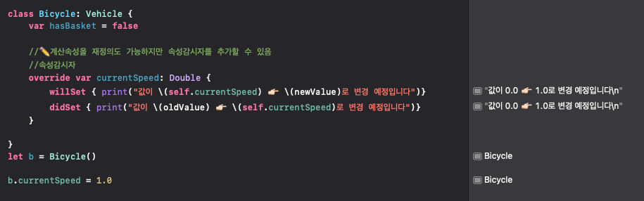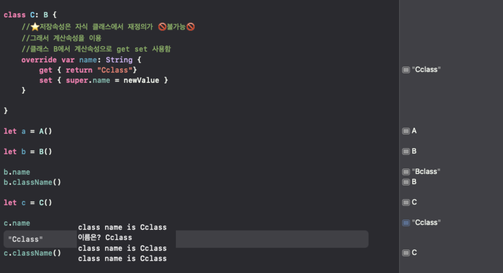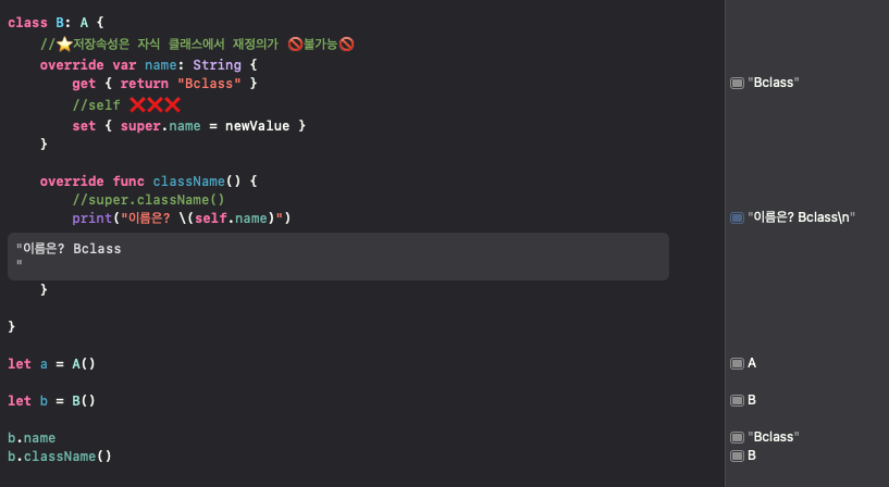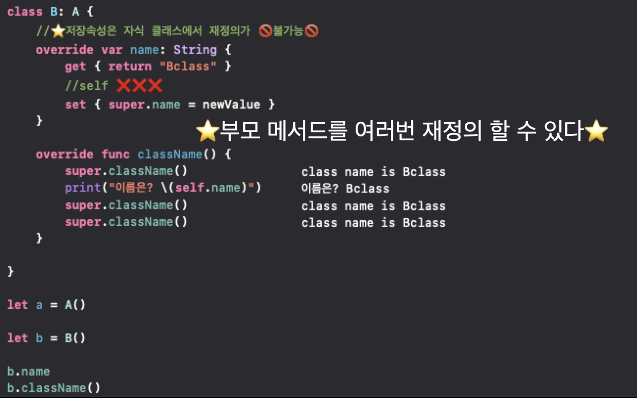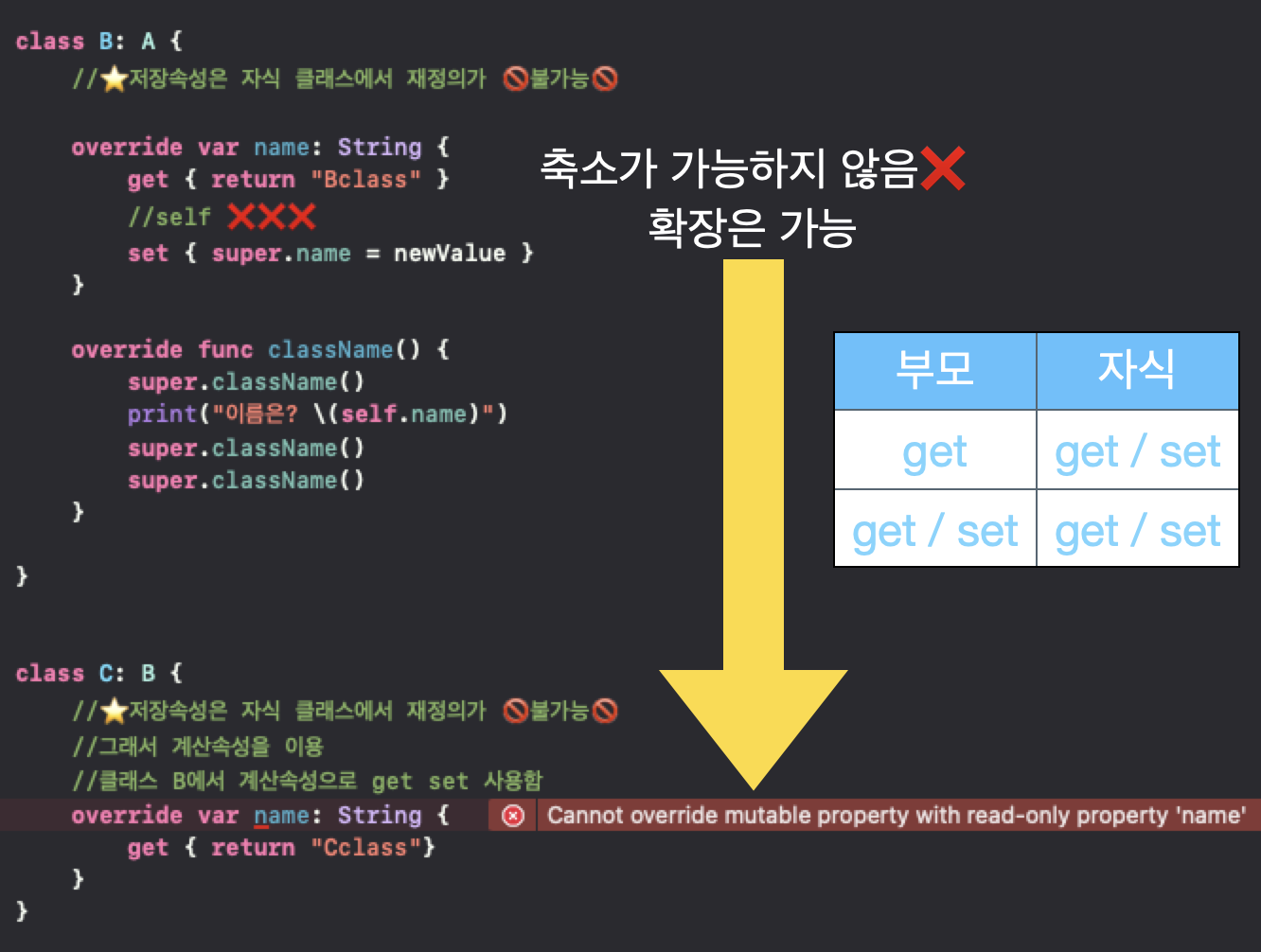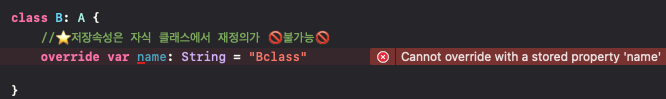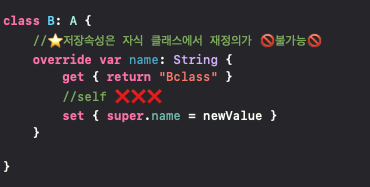 저장속성은 자식 클래스에서 재정의가 불가능!! 하다는점