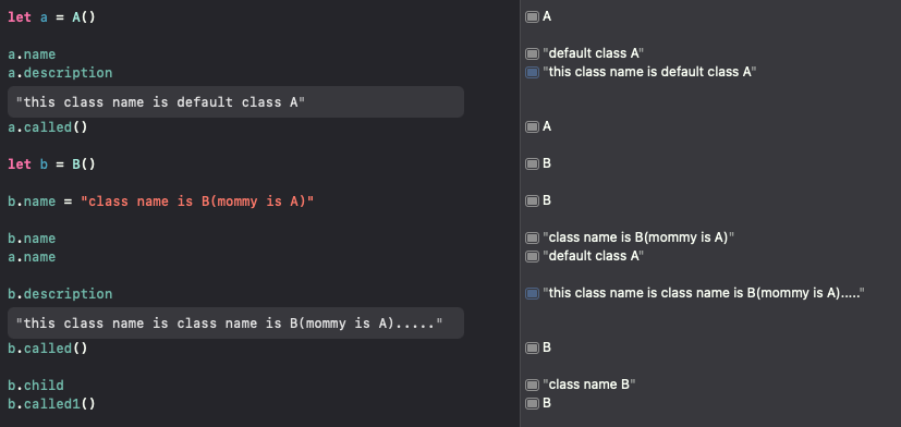 b를 인스턴스화 한 후 name 값도 변경해서 description에 있는 name 변수도