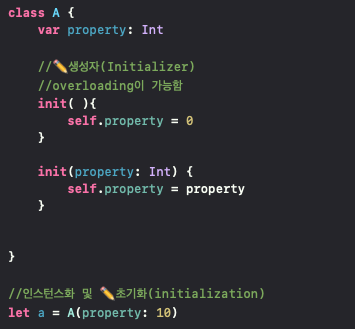 위 코드에서는 생성자는 property 속성을 초기하는데 사용이 됩니다