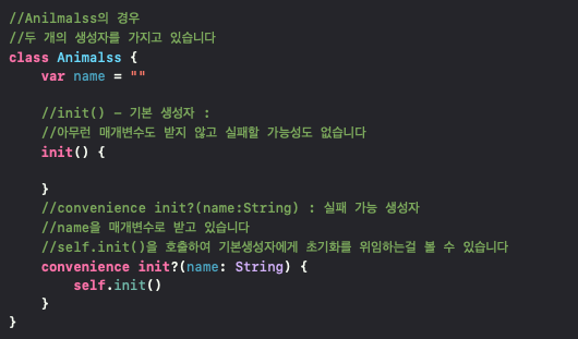 생성자를 만든 Init키워드 뒤에 ?를 붙이면 된다