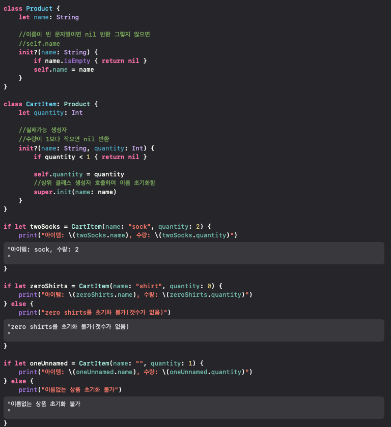 이렇게 간단하게 필수 생성자와 실패가능 생성자