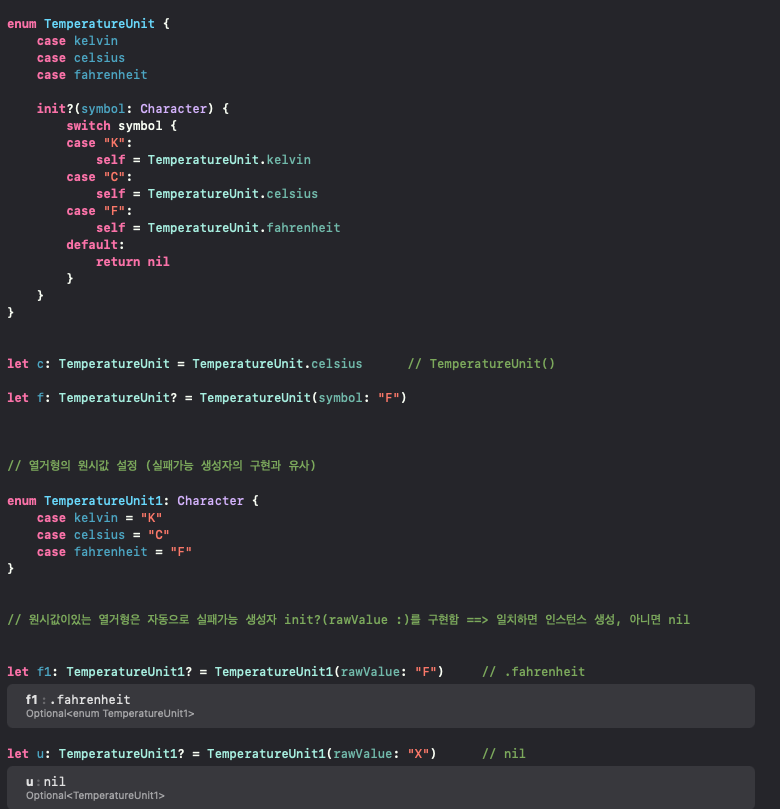 열거형도 동일하게 init?로 생성자를 만들어준다
