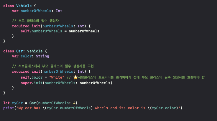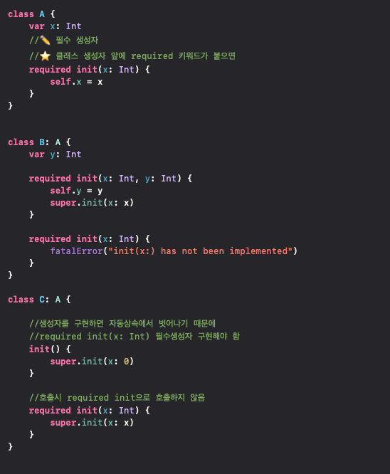 서브클래스(자식클래스)에서 required 생성자를 반드시 구현해야합니다