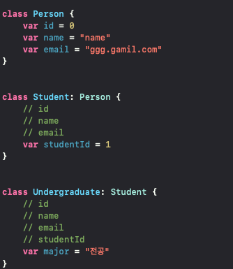 만약 학생관리 앱을 간단하게 만들어서 사용한다 했을때 이러한 예시로 사용할 수 있을거 같아
