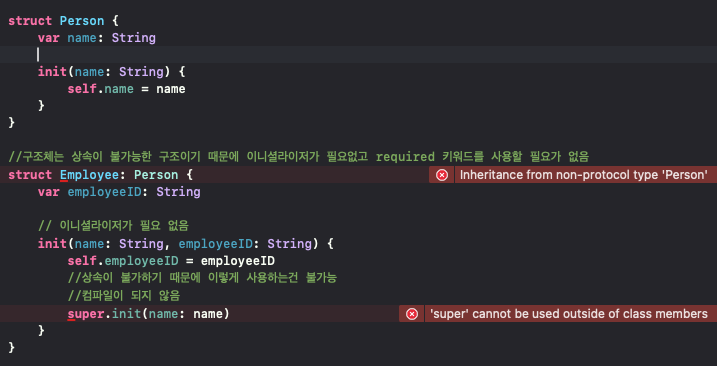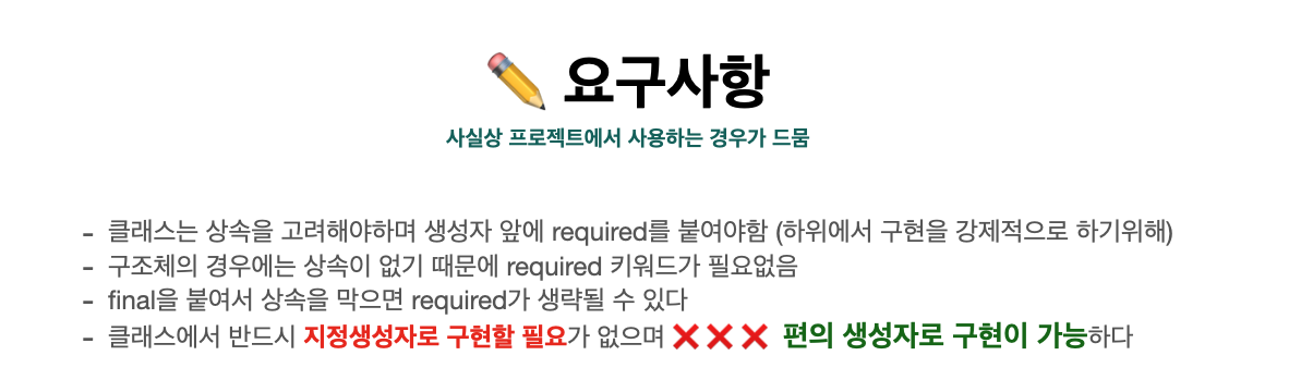 구조체는 상속이 불가하기 때문에 required가 필요없습니다