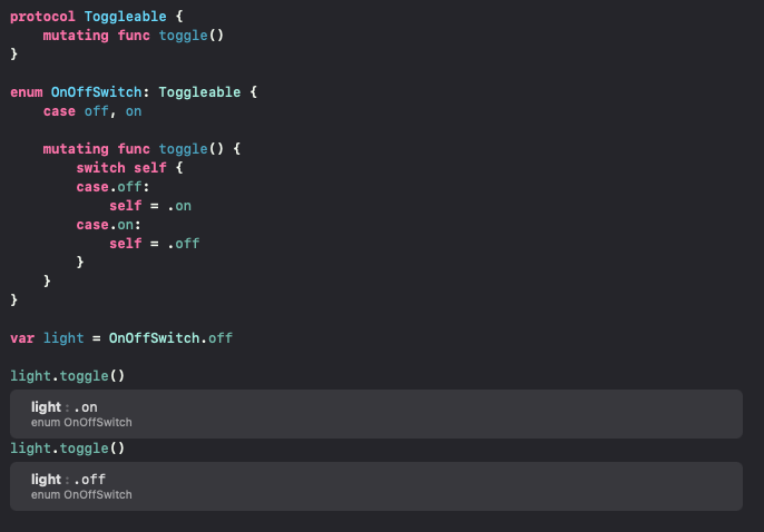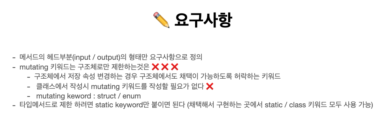 mutating은 열거형(enum) / 구조체(struct) 값타입에서 변경가능한 의미로 사용되는 함수 앞에 사용되지만