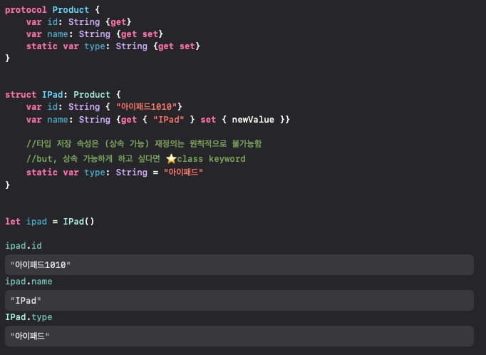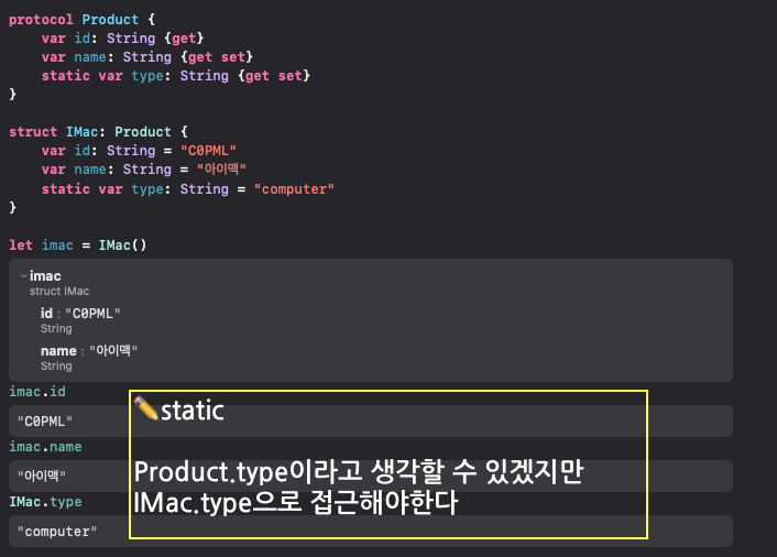 프로토콜에서 채택된 IMac을 보시면 계산 속성을 사용하고 있습니다
