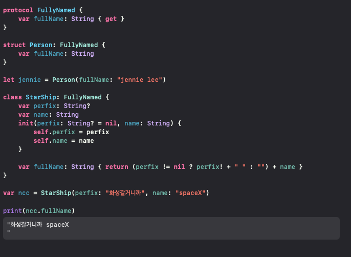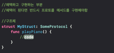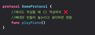 프로토콜을 채택한 곳에서 구현을 할 수 있다라고 정의를 내렸다