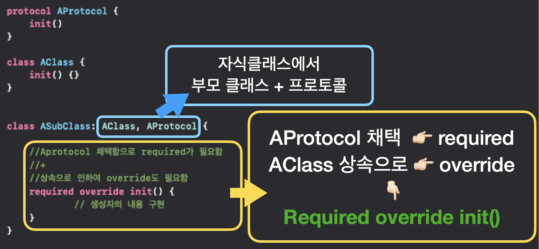 상속된 클래스 + 프로토콜을 같이 채택하므로