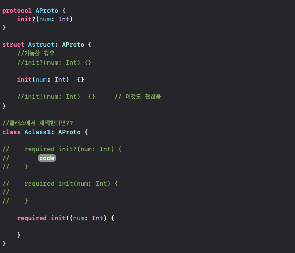 다음으로 실패가능생성자가 protocol내 들어가는 경우에 대해서 알아보고자 합니다