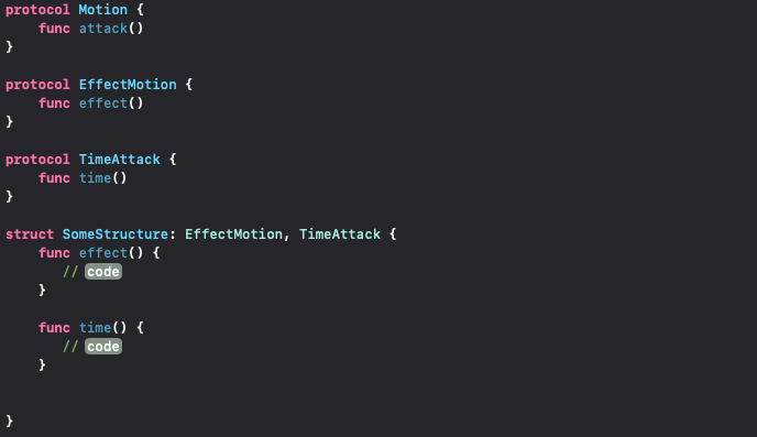 공통적으로 목적을 가진 함수지만 그 중에서도 사용하지 않는 인스턴스엔 Protocol을 넣지 않으면 사용하지 않아도 되기 때문에