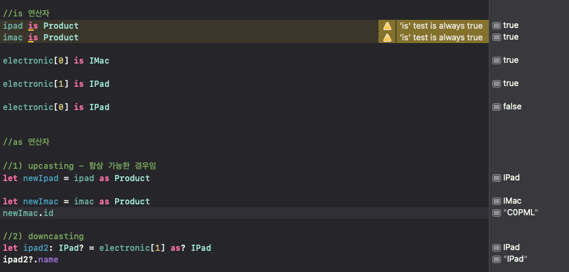 (특성 인스턴스를 프로토콜로 변환 or 프로토콜을 인스턴스 실제 형식으로 캐스팅)