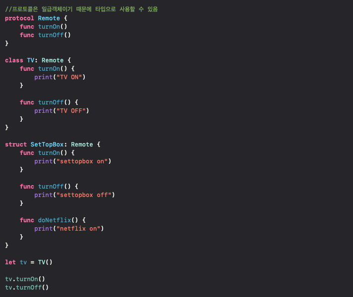 프로토콜을 채택한 구조체나 클래스에서 채택하면 됩니다