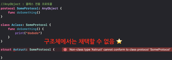 클래스 전용 프로토콜을 선언할 수 있습니다