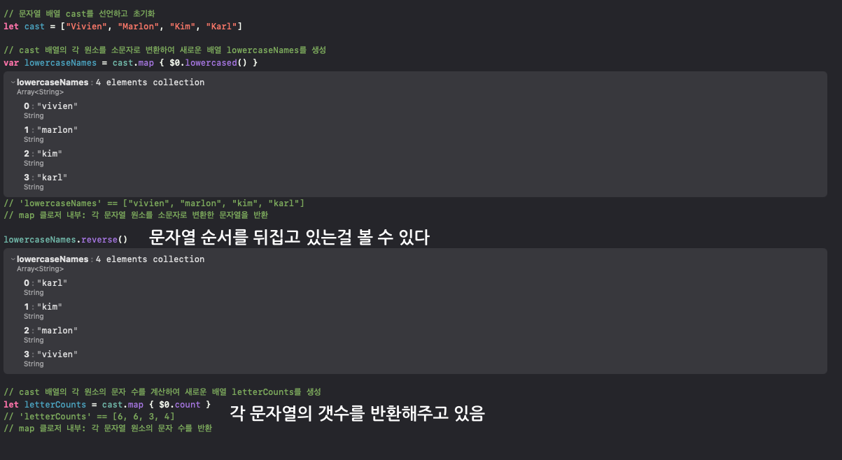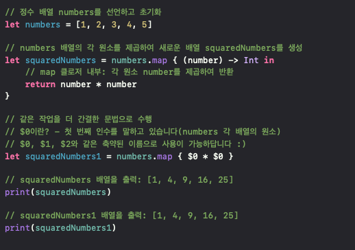 map 클로저 내부에서는 각 원소를 $0으로 받아들입니다