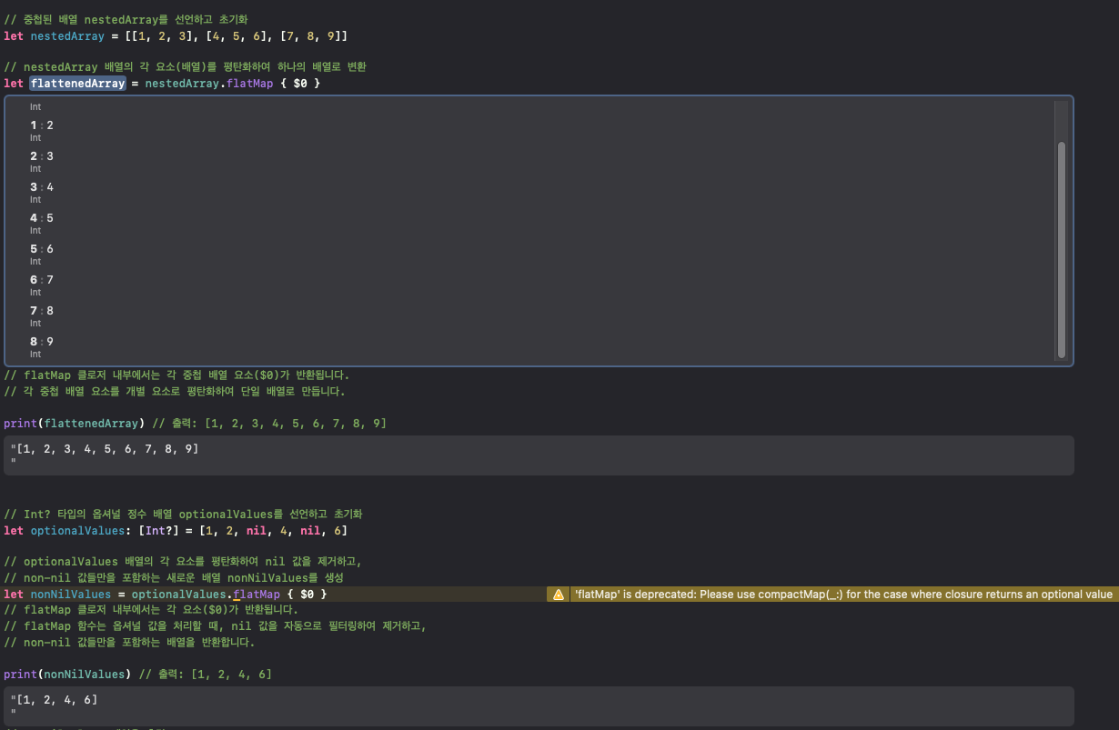 compactMap/flatMap 둘 다 기본 옵셔널을 벗겨서 기본 타입으로 나오기 때문에 편리 합니다