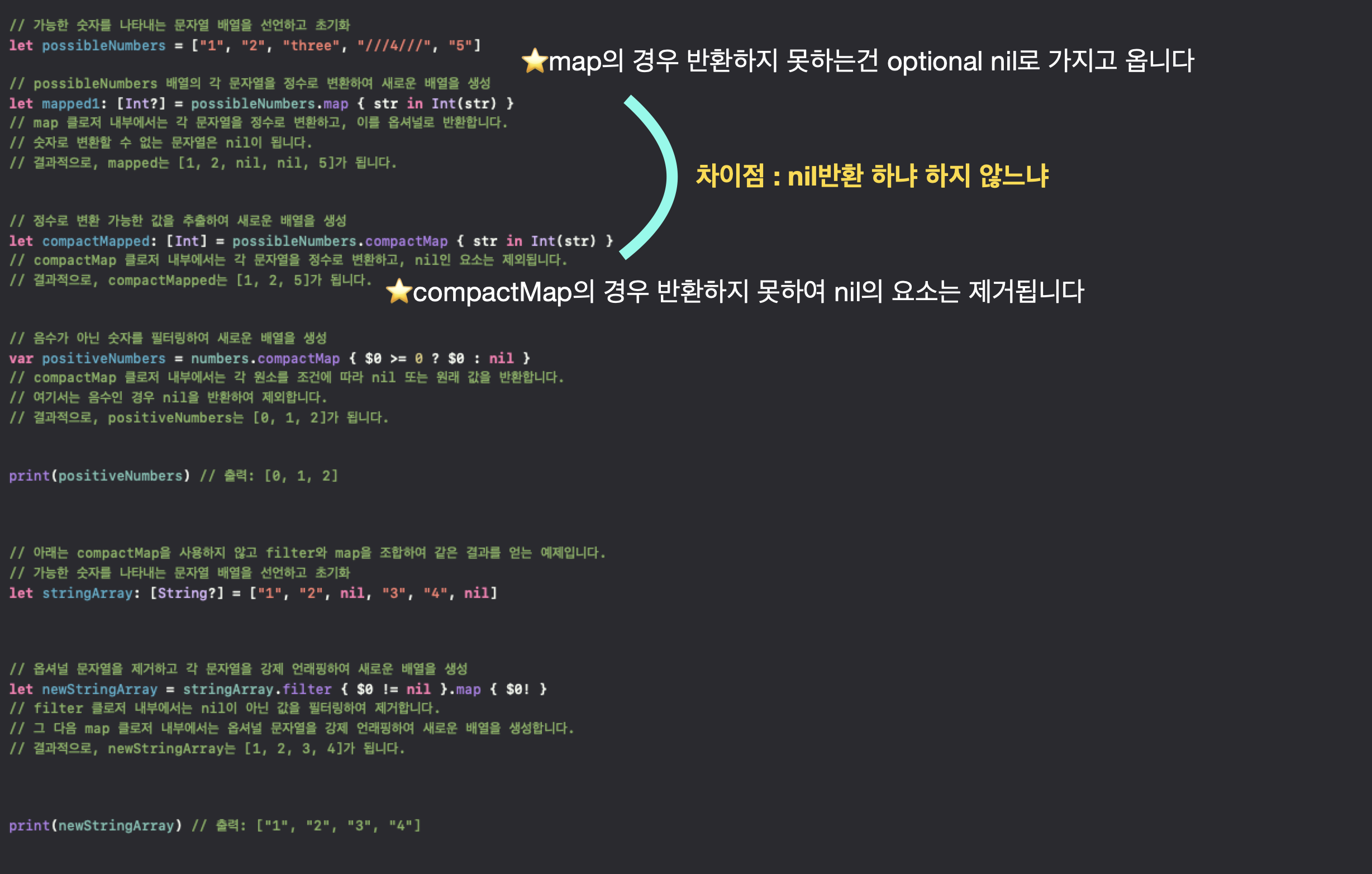 이렇게 compactMap은 map과 한가지가 다릅니다