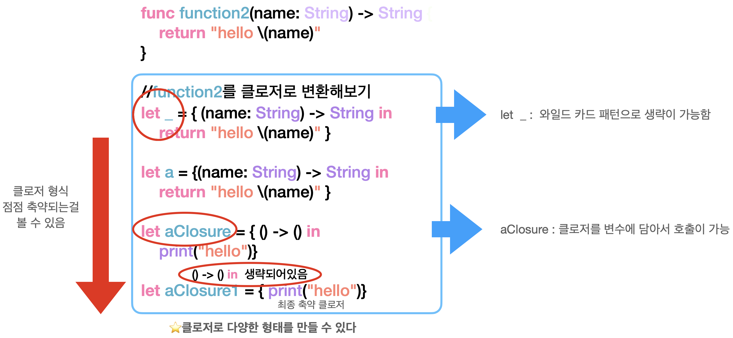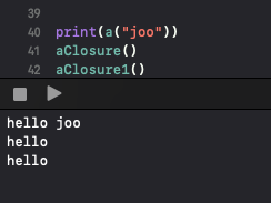 //실제 클로저가 아닌 클로저 타입을 전달하고 있기 때문에 "hello"가 출력되지 않습니다