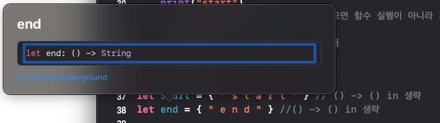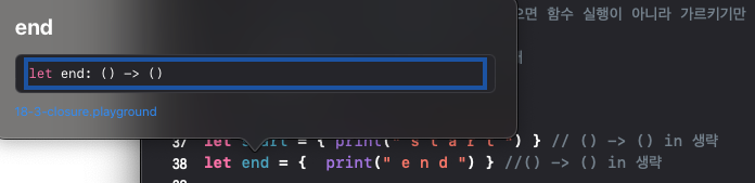let end = { print(" e n d ") } //() -> () in 생략