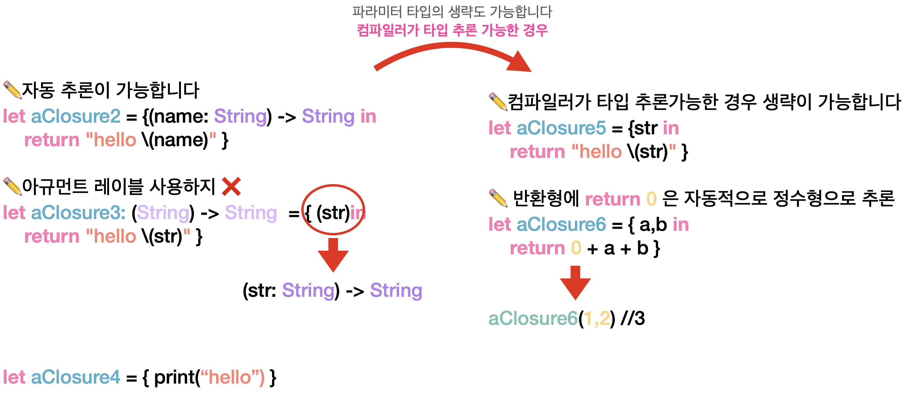클로저에 대한 타입추론이 가능하며