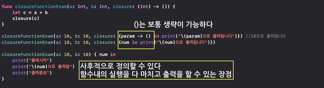한 번 더 후행 클로저에 대해서 설명할 예정이니 계속 해서 읽어주세요!