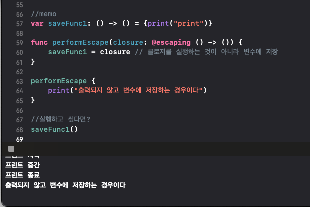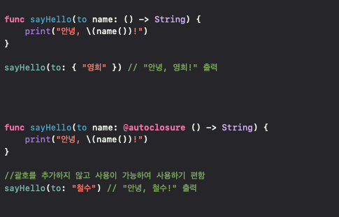 함수는 오토클로저와 탈출 클로저를 함께 사용하고 있습니다